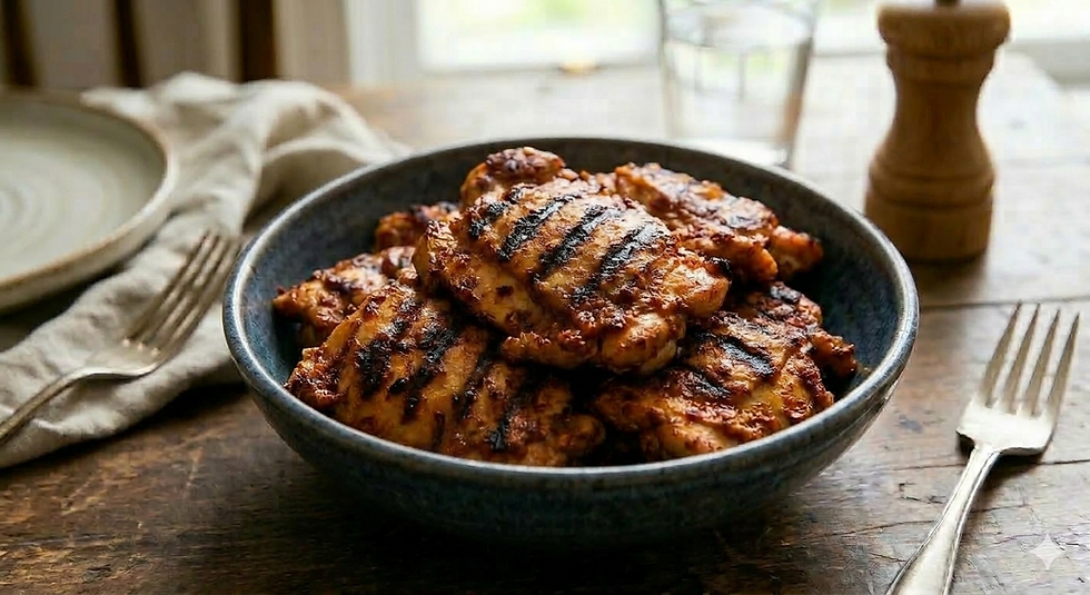 פרגית צרובה בצ'ילי עם בצל מקורמל וזיגוג טריאקי כ-6 יחידות
